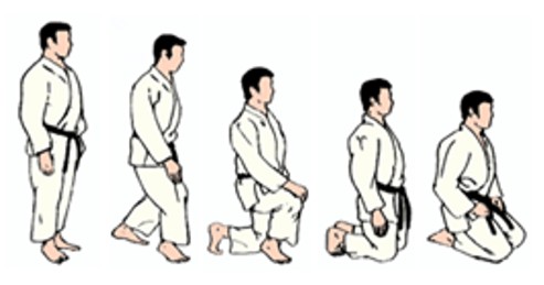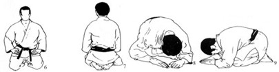 Questa ritualità è il retaggio della casta dei Samurai e, in caso di necessità, permetteva loro di sguainare agevolmente la spada anche da una posizione cosi svantaggiata; inoltre ”la tradizione marziale narra che nessun guerriero degno di tal nome abbassava la testa al punto di perdere di vista le mani della persona che gli stava di fronte, esponendosi cosi ad un attacco improvviso ed imparabile”. Alla fine di ogni inchino si ritorna in posizione di Seiza riportando sulle cosce prima la mano destra e poi la mano sinistra; a conclusione il Maestro si alza in piedi ed all’ordine Kiritsu (alzarsi in piedi) è seguito dagli allievi. Questa particolare forma cerimoniale, che a noi occidentali può risultare poco famigliare, ha invece nei paesi dell’estremo oriente, un ruolo basilare nelle relazioni sociali, è una tradizione millenaria. Il Giappone, patria delle Arti Marziali, non si sottrae a questo civilissimo costume, e di conseguenza per questo motivo, le forme cerimoniali del saluto, rivestono una particolare importanza.